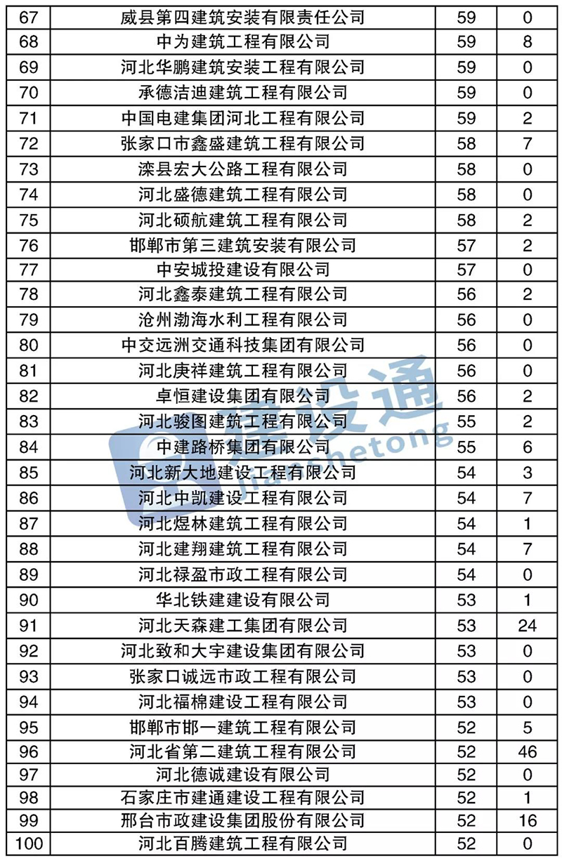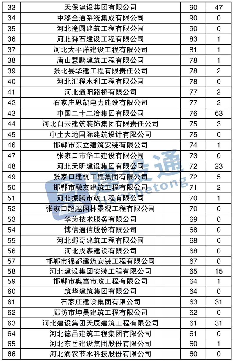 :在2019年,河北建筑施工企業(yè)中標(biāo)數(shù)量達(dá)49662項(xiàng),同比(與去年同期)6.70%。其中,分列中標(biāo)數(shù)量排行榜前三位。
