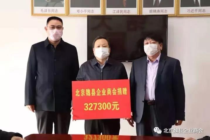 2月4日上午,中共魏縣縣委常委、統(tǒng)戰(zhàn)部長趙金剛代表魏縣政府從北京魏縣企業(yè)商會常務(wù)副會長馮玉山的手中接過30多萬元的捐款。