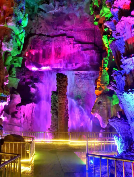 第二天下午,我們來(lái)到了位于泰山和徂徠山兩座山脈斷裂帶的地下龍宮景區(qū),景區(qū)內(nèi)綠樹(shù)成蔭,碧草連天,讓人放松身心,擁抱自然。地下又是另一番景象,裂隙深達(dá)數(shù)百米,在這里,我們可以無(wú)節(jié)制的發(fā)揮自己的想象力,驚嘆造化的鬼斧神工。洞內(nèi)每一個(gè)鐘乳石都有著自己億萬(wàn)年的故事,仿佛成長(zhǎng)中的剔透美玉,仿佛生命凝結(jié)于此。水和自然的力量,造就了一幅幅神奇與美妙的畫(huà)卷。溶洞內(nèi)常年恒溫16—18攝氏度,是清爽宜人的世外桃源。夢(mèng)幻般的情調(diào),神話的氛圍,嘩嘩的流水如聞仙樂(lè)縹緲,坐擁佛身仙影如臨其境。大自然如此充滿(mǎn)人性化的安排怎不令人拍案叫絕。